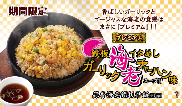 叭哩叭哩的鐵板飯上鋪滿爽脆的蔥絲和櫻花蝦,加入風味濃郁的特製醬汁一同拌炒,日本花月嵐鐵板炒飯的NO.1,推薦您品嚐!