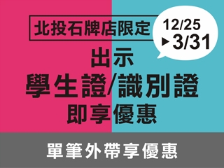 12/25~110/3/31,出示學生證/識別證即享優惠! 單筆外帶就送免費券!