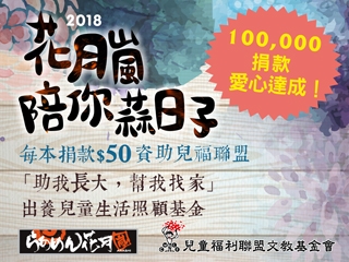 謝謝大家的愛心!花月嵐2018公益日誌愛心捐款達成!